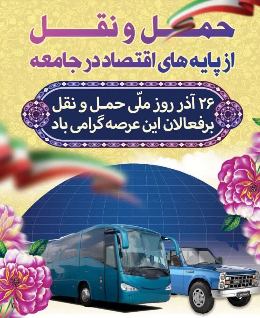 ۲۶ آذر روز ملی حمل و نقل و رانندگان بر فعالان این عرصه گرامی باد.